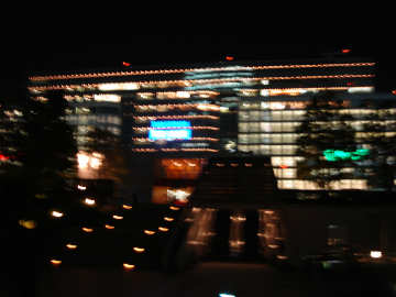 エムパイアドコモビルと月とやっぱり夜景モードはぶれる
